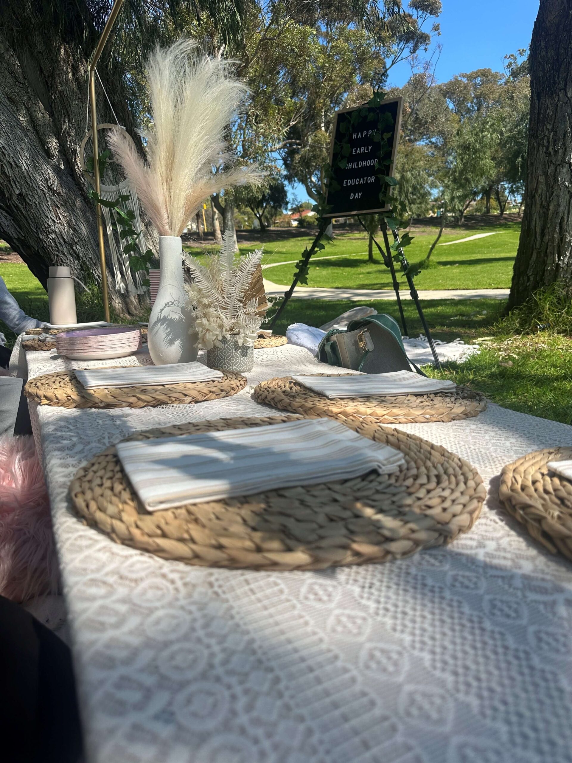At Padbury Education and Child Care Centre, we honoured our incredible team with a relaxing gourmet picnic, beautifully set up by Creative Party Flair. It was a heartfelt and joyful day, filled with appreciation, laughter, and a moment to unwind.
